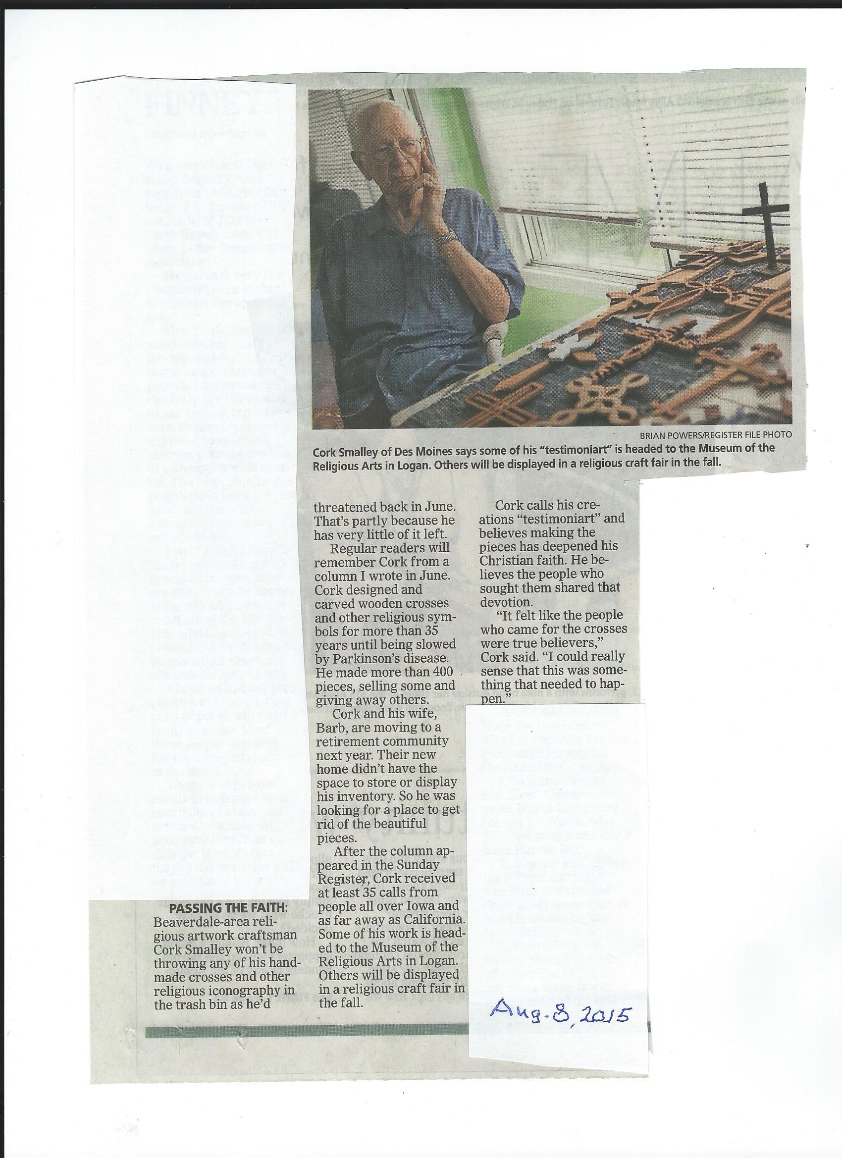This was the beginning of nearly 35 years of making what Cork calls “testimoniart.” Over the years, he’s made more than 400 pieces, mostly wooden crosses of various sizes and shapes.